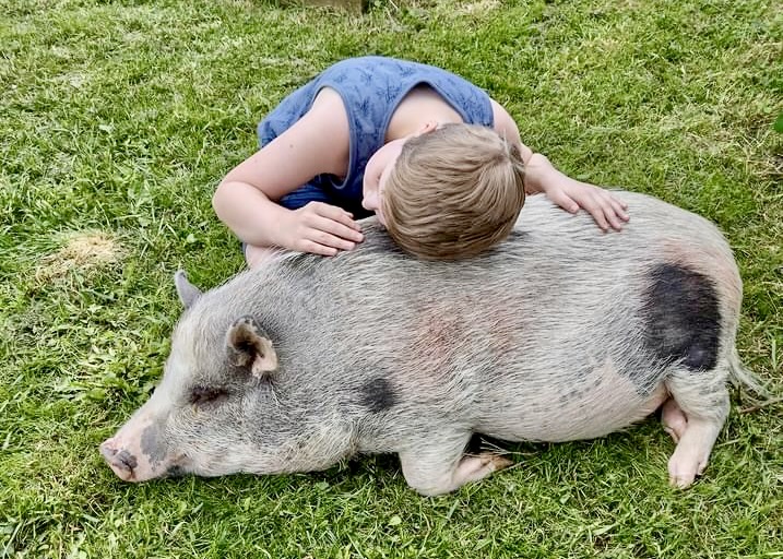 När man ser henne strosa runt bland äppelträden, eller skutta runt i galopp bland hönsen – ja då blir man lycklig. Hon ser ut att ha det så vansinnigt skönt.